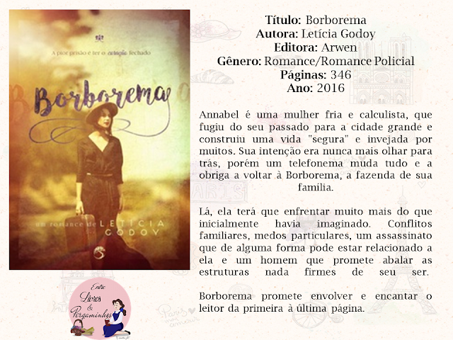 Olá leitores, tudo bem? Ah o passado...Quantas vezes tentamos fugir dele, enterra-lo dentro de um baú? Mas ele teima em voltar e deixa todo seu ser fora de órbita. Pobre Annabel, será ela capaz de enfrentar seus medos e seguir seu destino? Arrume suas malas, tire seus saltos, coloque sapatos confortáveis e vamos juntos viajar para Borborema, de Letícia Godoy.